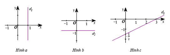 a) x + 0y = 1: Ta viết gọn thành x = 1. Phương trình có nghiệm là (1; y) với tùy ý. Đây là đường thẳng song song với trục tung và cắt trục hoành tại điểm